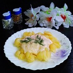 И щедро поливаем кремовым соусом. Сверху посыпаем паприкой и зеленью.