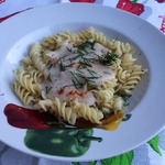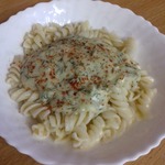 По желанию, можно перемешать всю пасту с соусом в одной ёмкости, а затем уже раскладывать по тарелкам.