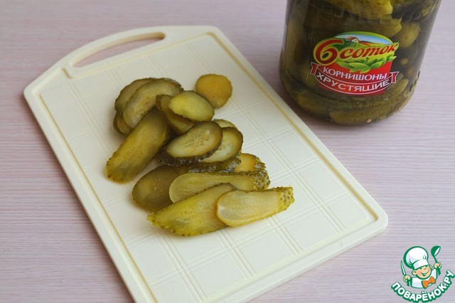 Огурцы Торговой марки «6 соток» (5 шт.) нарезать тонкими ломтиками