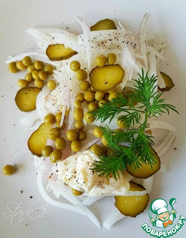 - Горошек зеленый (Не большая баночка консервированного горошка) — 1 бан.