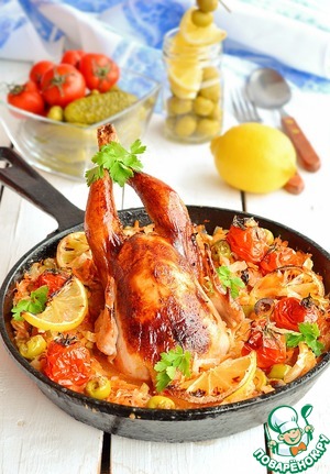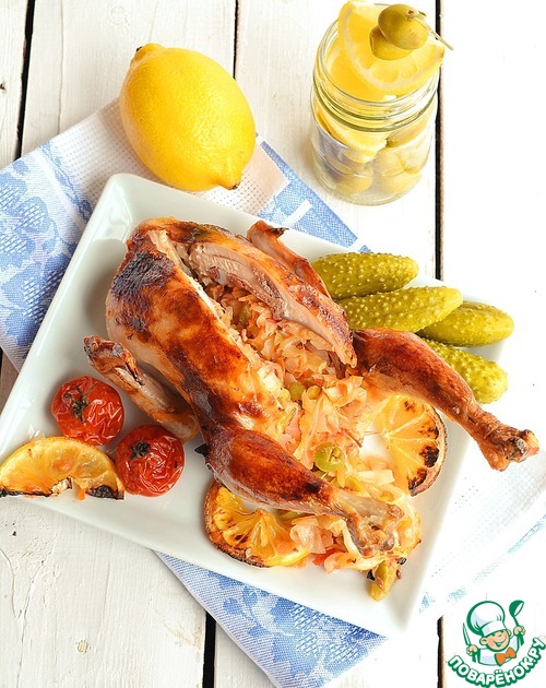 Рецепт «Цыпленок, запеченный с капустной солянкой»: