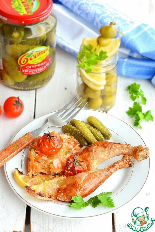 Цыпленок, запеченный с капустной солянкой