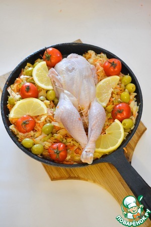 Ингредиенты для «Цыпленок, запеченный с капустной солянкой»: