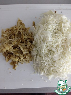 Капусту мелко шинкуем. Я сделала это овощечисткой. Огурцы трем на крупной терке.
