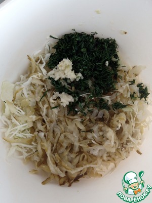 Укроп мелко рубим, чеснок пропускаем через чеснокодавку.