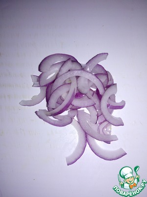 Лук очищаем от шелухи, режем тонкими полукольцами.