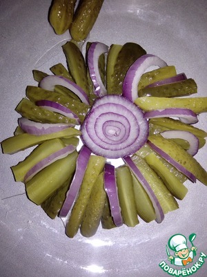 Смешиваем лук и огурцы, заправляем маслом. Можно приправить молотым перцем.
