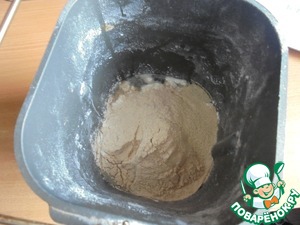 Для теста сложить в чашу хлебопечки ингредиенты для теста в следующей последовательности-в ода, пшеничная, гречневая мука, оливковое масло, соль, сахар и дрожжи. Включить режим тесто. По окончании замеса выложить тесто в припыленную мукой чашку и оставить в теплом месте на 20-25 минут.