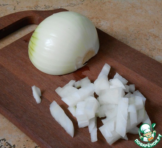 Нарезать лук, обжарить его на среднем огне до прозрачности.