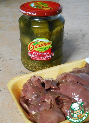 Ингредиенты для «Куриная печень с маринованными огурцами»: