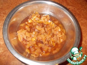 - Варенье (у меня персиковое,но можете взять любое имеющееся!Главное,чтоб было с кусочками фруктов) — 600 мл