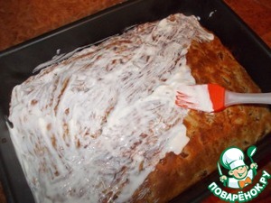 - Сметана (для смазывания пирога) — 1,5 ст. л.