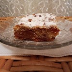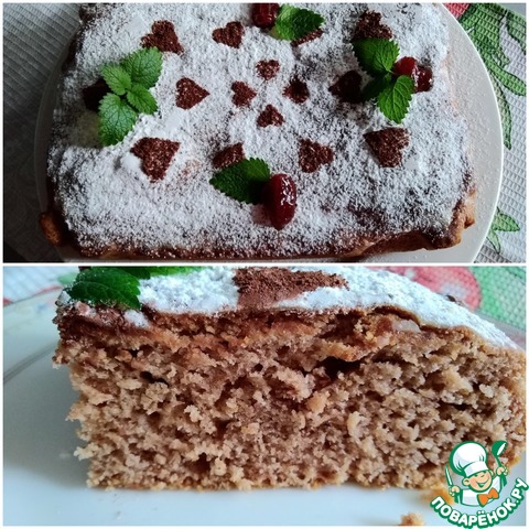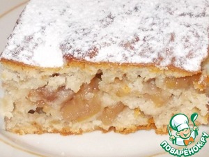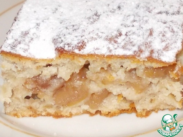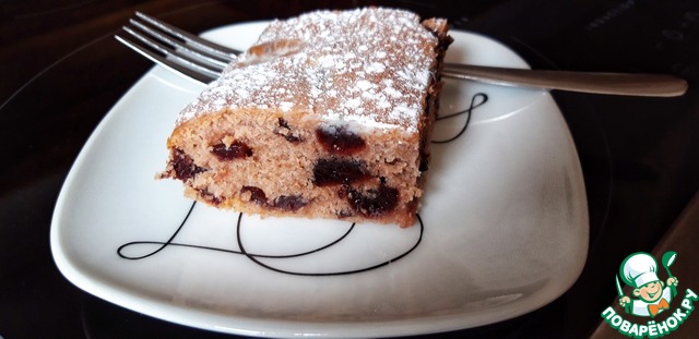 Разрезаем на кусочки. Пирог выходит очень ароматный, рыхлый, мягкий, сладкий. Кусочки фруктов можно сравнить с изюмом или цукатами. Легко, просто, вкусно!