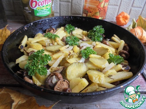 Рецепт «Картофель с рыжиками и маринованными огурцами»: