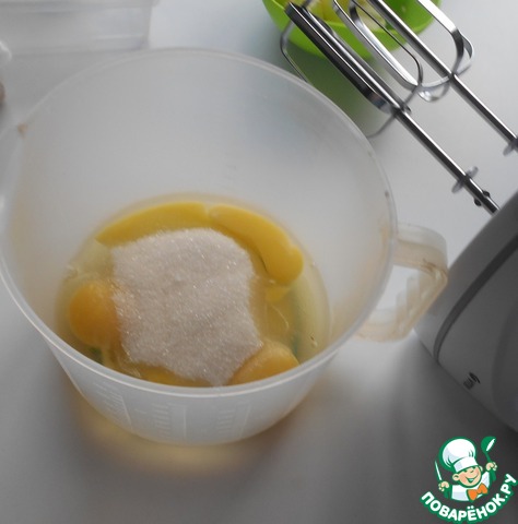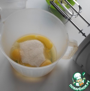 Взбить яйца с сахаром с помощью миксера.