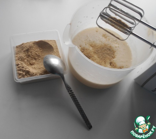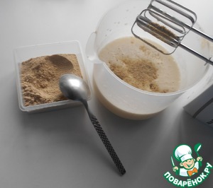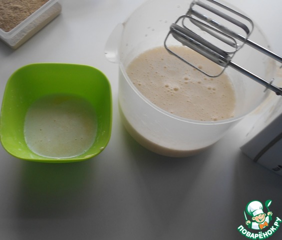 Добавить растопленное сливочное масло. Перемешать миксером.