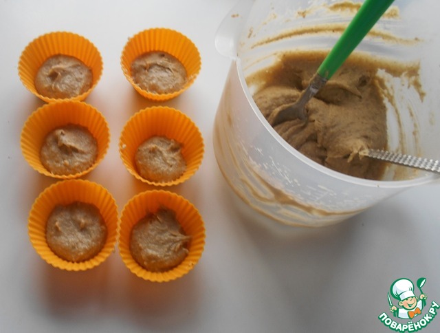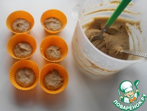 Перед тем как накладывать в формы тесто, дайте ему постоять минут 10. Оно станет еще гуще, т. е. консистенция густая сметана. С ложки тесто не падает. При накладывании в формы помогать рукой.