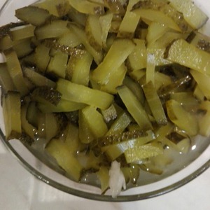 - Огурец соленый (средних, с рассолом. На наше количество солянки 1 стакан) — 5 шт