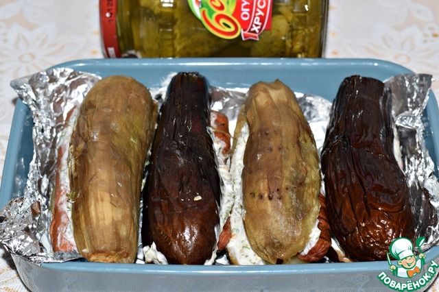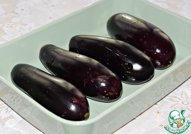 Выложить баклажаны в подходящую форму плотненько друг к другу.