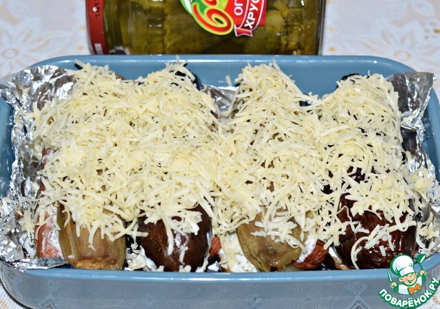 Закрыть каждый баклажан, чуть придавив его.