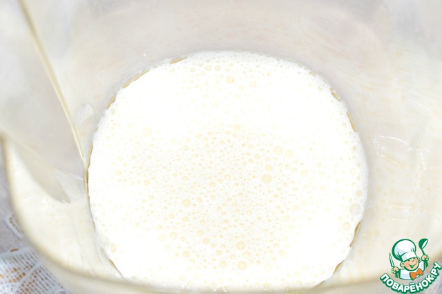Второе яйцо взбить с растительным маслом при помощи блендера в однородную эмульсию (2-3 минуты будет достаточно)