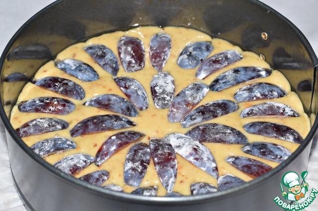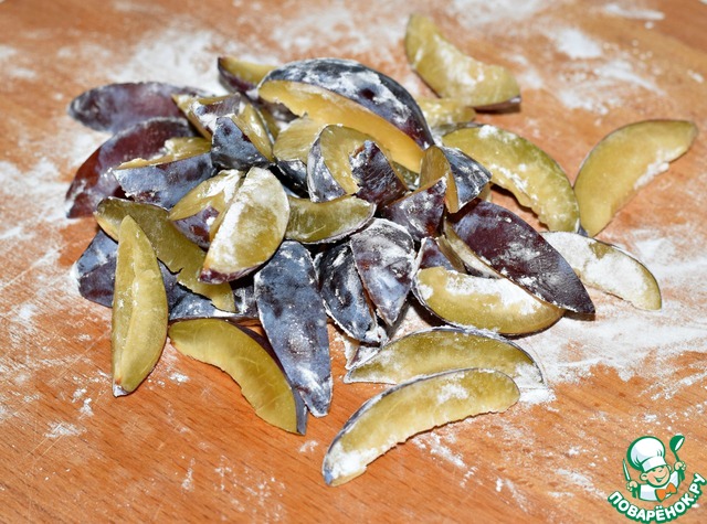 На тесто разложить сливовые дольки.