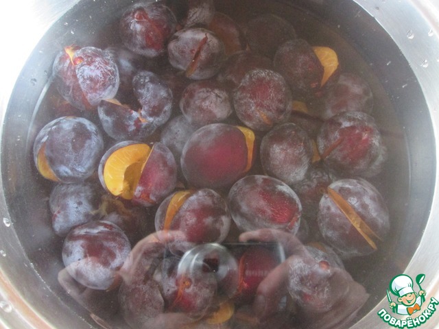 Сливы помойте, удалите косточки. Залейте холодной водой и на среднем огне доведите до кипения. Уменьшите огонь и варите до мягкости, минут 20.