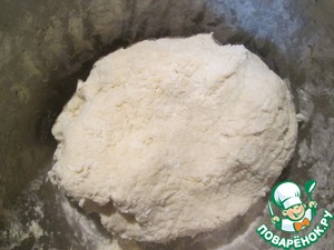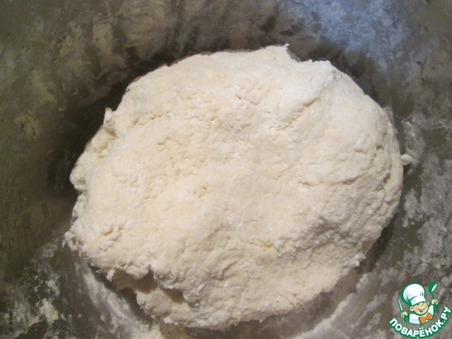 Добавить муку, замесить тесто, завернуть его в пленку и убрать в холодильник на полчаса.