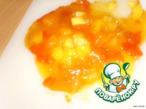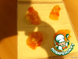 В середину квадратика положила хурму и закрыла в виде треугольника.