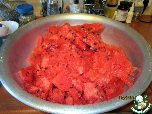 Всем привет! Сегодня будем готовить арбузный мёд из арбуза :). Ключ к успеху этого мероприятия-хорошие арбузы, не только красные но и сладкие. Арбуз не должен быть битым или мягким перезревшим, с недозрелыми можно даже и не начинать. И много терпения в процессе приготовления. Можно приготовить банный веник, заодно и попаритесь. Жара на кухне будет стоять адская.
