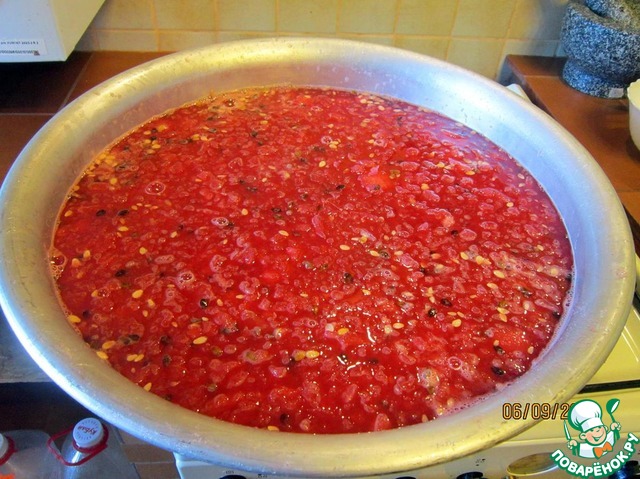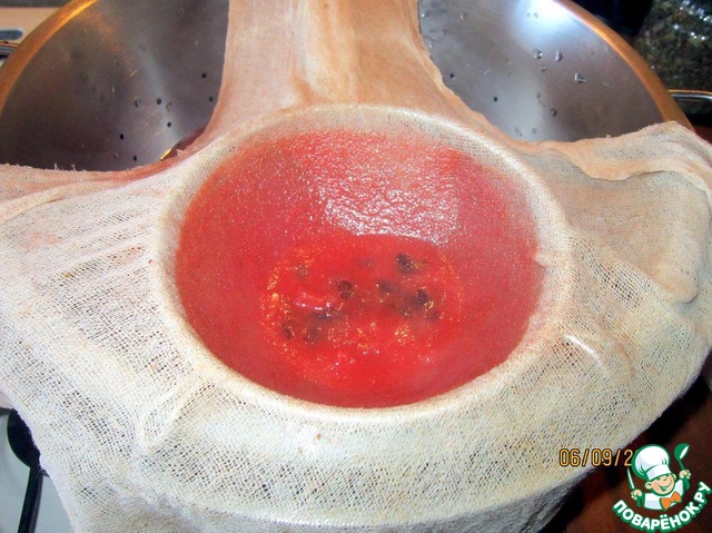 Окончательная очистка арбузного сока от семечек и мякоти.