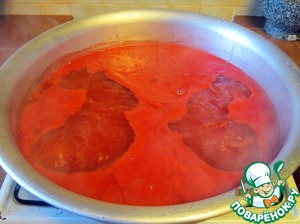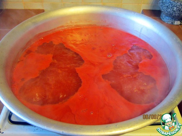 Включаем газ на полную и начинаем выпаривать, постоянно снимая пену.