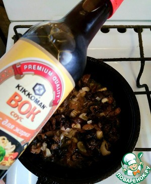 Добавить соевый соус, жарить до готовности.