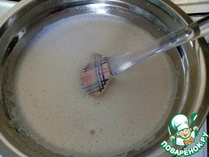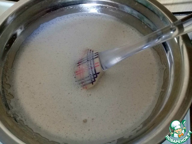 Взбить яйца, сахар и мед, затем поставить на вод. баню и помешивать до растворения сахара. Добавить соду и снять с плиты.