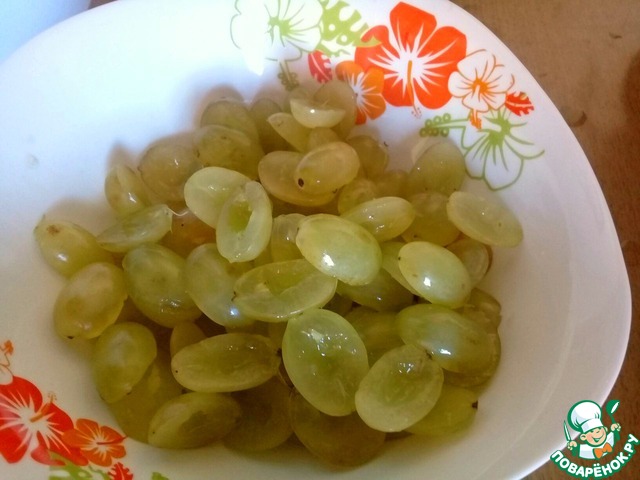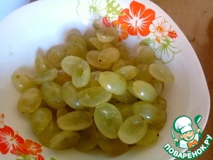 Виноград промыть и хорошо обсушить. Режем его на половинки и удаляем косточки.
