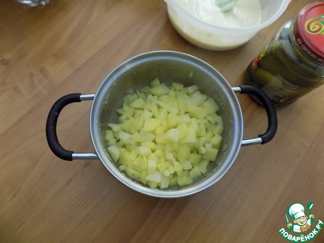 Ставим варить картофель, нарезав его мелким кубиком, немного посолив.