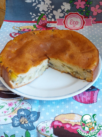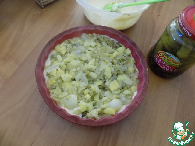 Заливной пирог на кефире с жареным луком, хрустящими огурчиками "6 соток" и картошкой. Не сложный в исполнении, не требует много усилий и затрат, а так порадует ваших дорогих!