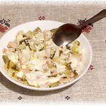 [+5]Кальмары у меня были отварные, свои огурцы и заправляла майонезом, к сожалению отсутствовала зелень. Салат получается сочным, свежим, нежным. Очень быстро готовиться и так же быстро съедается))