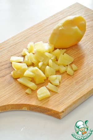 Отваренный в мундире картофель очистите и нарежьте мелкими кубиками