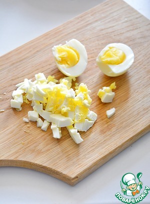 Яйца сварите вкрутую, очистите и нарежьте мелкими кубиками