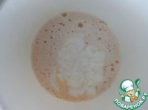 Яйца с сахаром немного взбиваем венчиком, добавляем пудинг.