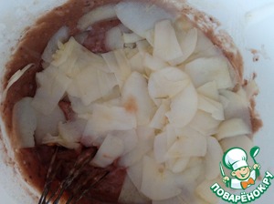 Яблоки очищаем от кожуры и натираем на крупной терке, либо как я овощечисткой. Тщательно вымешиваем.