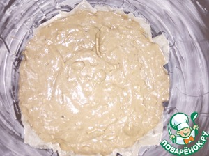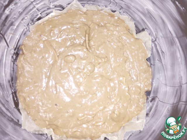 Выливаем в чашу для мультиварки, смазанную сливочным маслом и застеленную пергаментом. Выставляем режим выпечка 60 минут. Сразу после сигнала извлекаем пирог из чаши и остужаем.