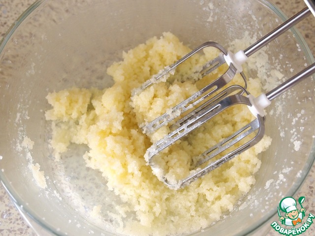 Миксером взбить размягченное сливочное масло и сахар до состояния крема.