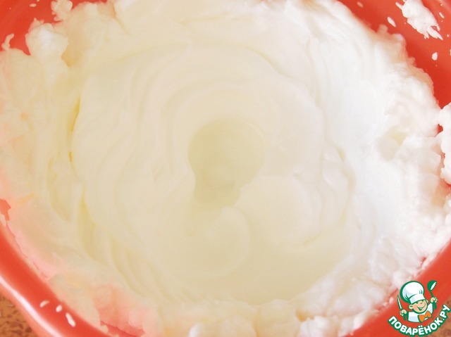 В сухой миске взбить белки миксером (5 мин) в крепкую пену.