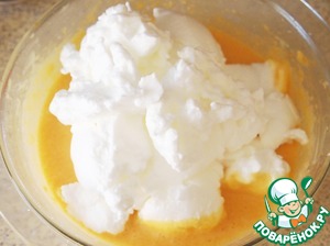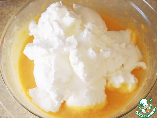 Ложкой или лопаткой аккуратно вмешать взбитые белки в тесто (без миксера).