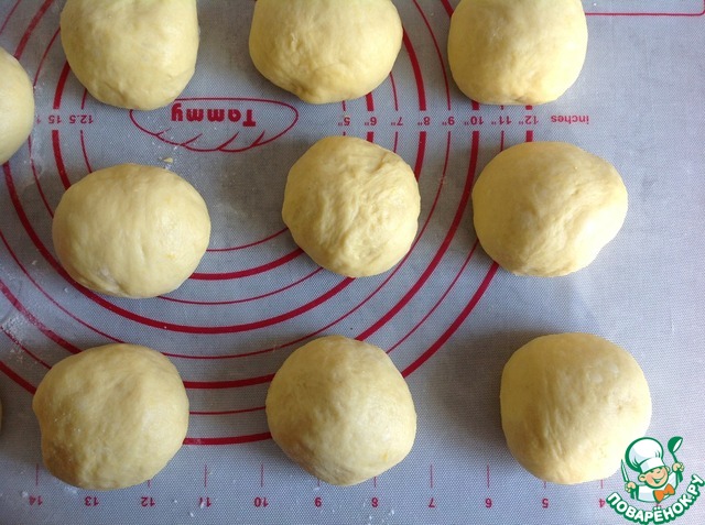 Разделить тесто на 15 равных частей и сформировать колобки.