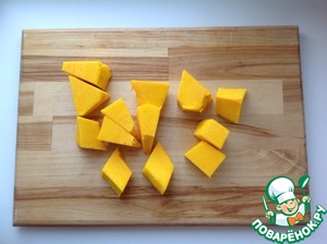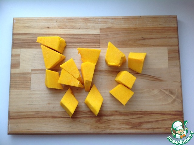 Для начала приготовим тыквенное пюре. Тыкву очистить от кожуры и семян, нарезать на ломтики.