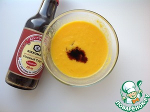 Добавить соевый соус для усиления вкуса. Я использую натурально сваренный соевый соус ТМ Киккоман. Хорошо перемешать.