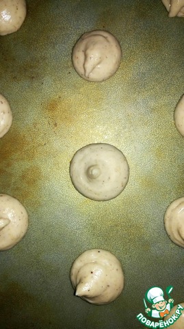 Готовое тесто переложить в кондитерский мешок и с его помощью отсадить на противень, застеленный пергаментной бумагой (у меня силиконовый коврик). Вместо кондитерского мешка можно использовать обычный молочный пакет или воспользоваться чайными ложками.